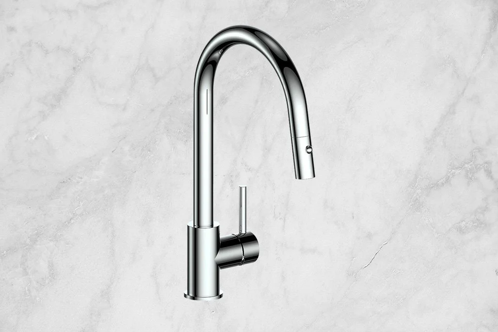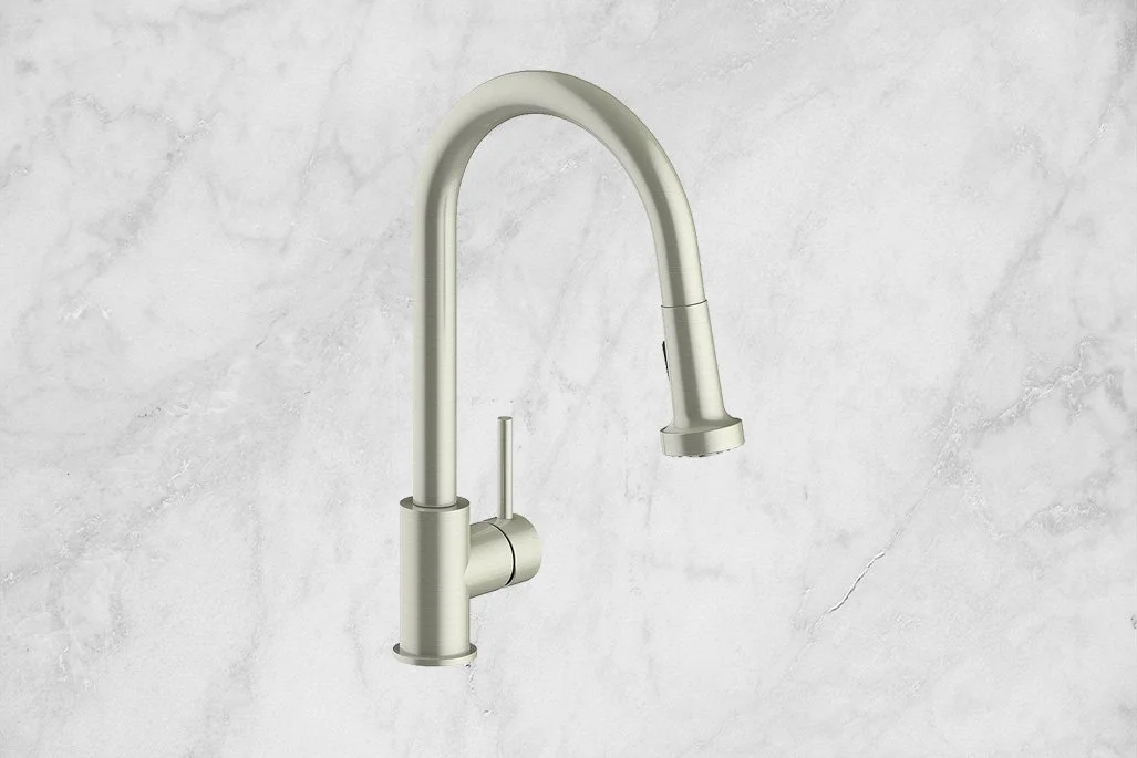 A streamlined pull-down faucet featuring dual spray functions, a smooth swivel spout, and a durable brass construction—ideal for busy kitchens that need flexibility and performance.